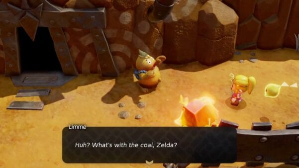 Deliver the Coal to Limme: Upon reaching the entrance of Goron City, locate Limme standing to the right. Place the flaming coal beside him and speak to him to complete the delivery.