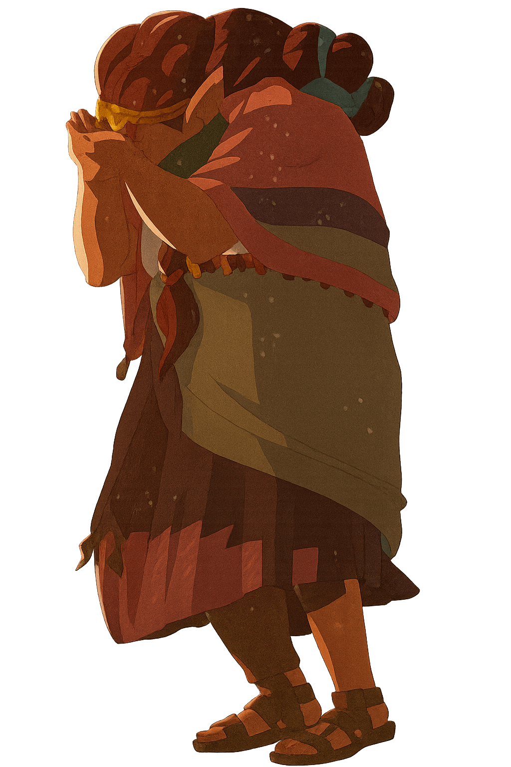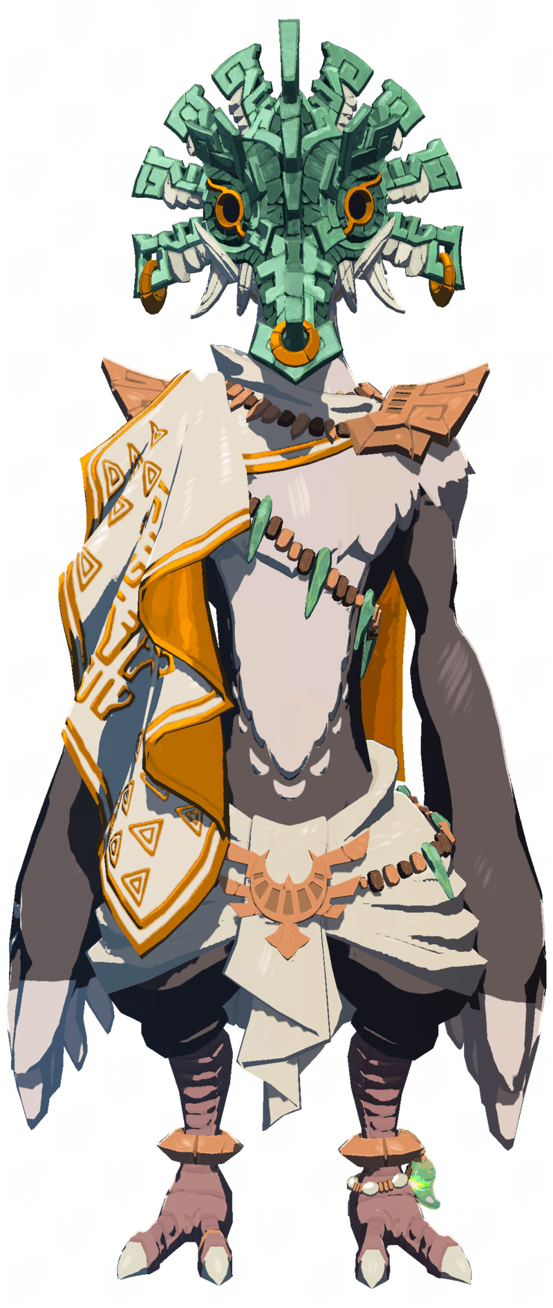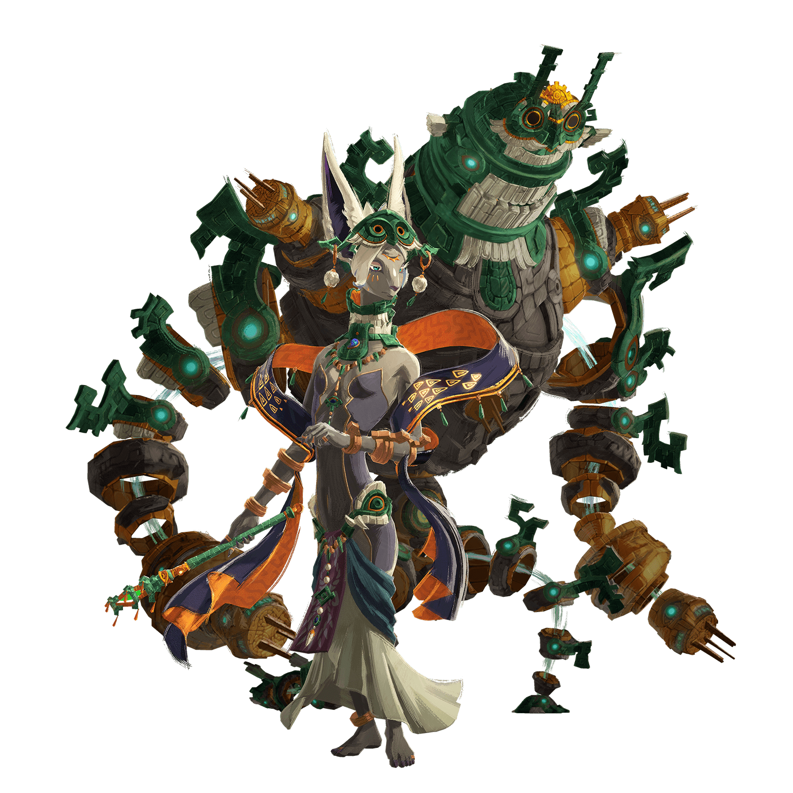 A surprisingly brave Korok warrior steps out from the forest to join the fight. This small champion bravely wields a Forest Dweller’s Sword and cleverly uses various fruits as projectile weapons. They are always accompanied by a mysterious, unnamed Construct. A unique leaf and head protrusions give them the appearance of wearing a hat, and their scarf is curiously similar to those worn by Mineru and Rauru.