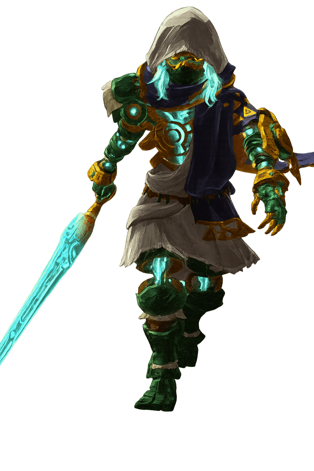 The Zora chosen to harness the power of water. With the grace of a flowing river, this sage uses a ceremonial trident to control the battlefield. They can create healing torrents to support their allies or summon massive waves to wash away entire battalions of monsters. Their wisdom and fluid fighting style are invaluable to the united forces of Hyrule.