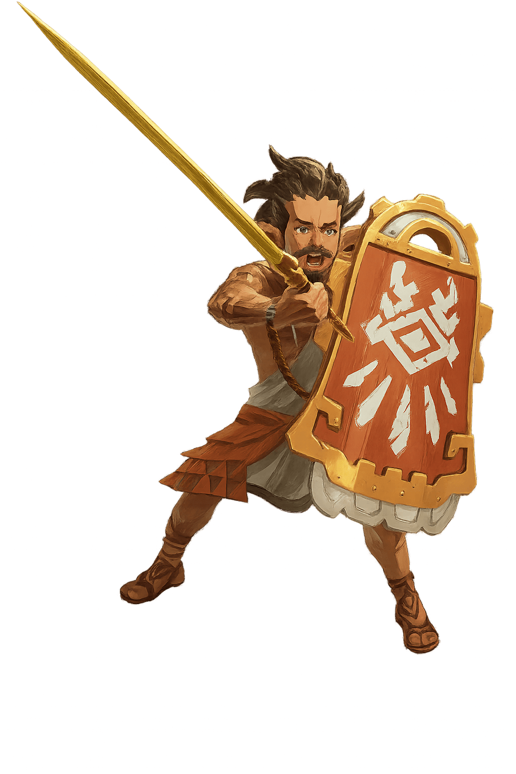 Role in Story: Typhan is a veteran Hylian soldier who serves as a devoted protector of King Rauru and Queen Sonia. As the captain in charge of training Hyrule’s soldiers, Typhan has years of combat experience and unshakable loyalty. He fights with a broadsword and a massive shield, making him a steadfast front-line warrior. Typhan’s disciplined fighting style and defensive skills (shield bashes, rush attacks, etc.) reflect his role as the kingdom’s guardian. Typhan is unlocked with the rest of the Chapter 2 characters after the events of “The Howling Tempests” are resolved.