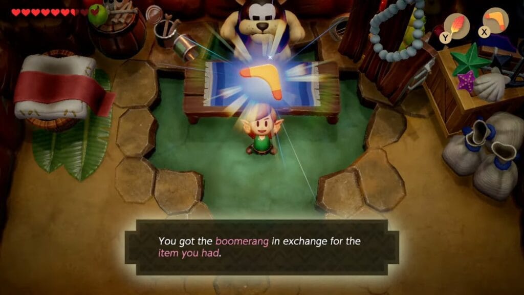 Getting Your Item Back: Don’t worry about permanently losing your traded item! You can always return to the Goriya and trade the Boomerang back to retrieve it. In the Nintendo Switch remake, you also have the convenient option to simply buy back your traded item for 300 Rupees, letting you keep both.