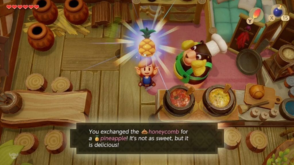 It’s one of the most memorable parts of Link’s Awakening – that long chain of trades stretching across the whole island! You start with a simple toy and end up with gear that’s absolutely essential. Some steps must be done to move the main story forward, while finishing the whole thing nets you gear that makes the end-game much easier (and reveals some secrets!).