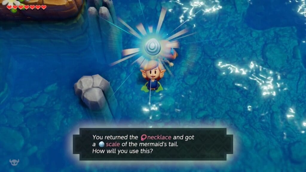 What? Find the Mermaid – she’s missing her necklace! Return the Mermaid’s Necklace you just got. As a thank you, she lets you take one Mermaid’s Scale from her tail.