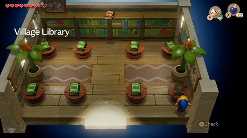 Perhaps the MOST critical function of the Magnifying Lens (obtained as item #14 in the sequence) is its ability to unlock Koholint’s final secret. Head to the Library in Mabe Village. With the Magnifying Lens equipped, you can now read the book in the bottom-right corner, often titled “Dark Secrets and Mysteries of Koholint”. Without the Lens, this book is unreadable.