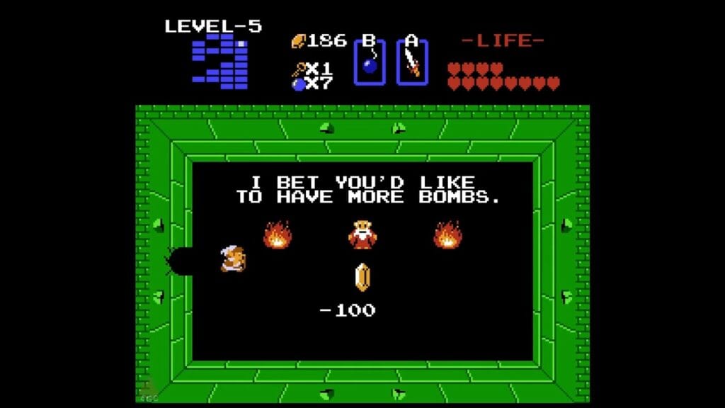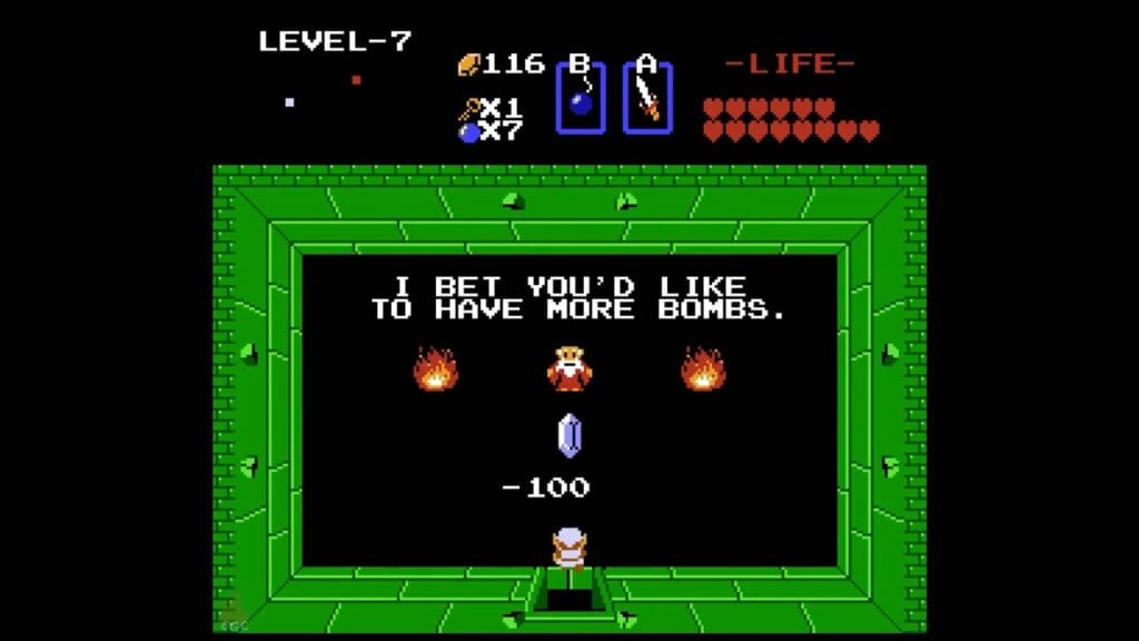 The Offer: In the room beyond the locked door, another Old Man awaits. He’ll offer the second bomb capacity upgrade, taking you from 12 up to a maximum of 16 bombs, again for the price of 100 Rupees.