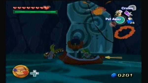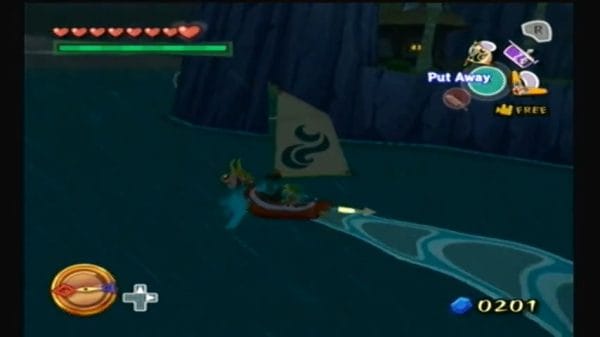 Arrive at Windfall Island, which is cast in night and rain due to Ganondorf’s curse. Park your boat at the dock. Your goal here is to find the pirate crew and acquire Bombs before they do. It’s still night, which actually works to your advantage for what comes next.