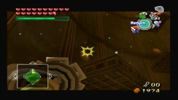 This classic item is a long-range grapple that lets you latch onto targets and pull yourself (or certain objects) to that point. Equipping the Hookshot will significantly change how you traverse the dungeon from here on. Note: In Wind Waker HD, the Hookshot can be aimed with the gyroscope for finer control (if you prefer), but otherwise it functions the same as on GameCube.